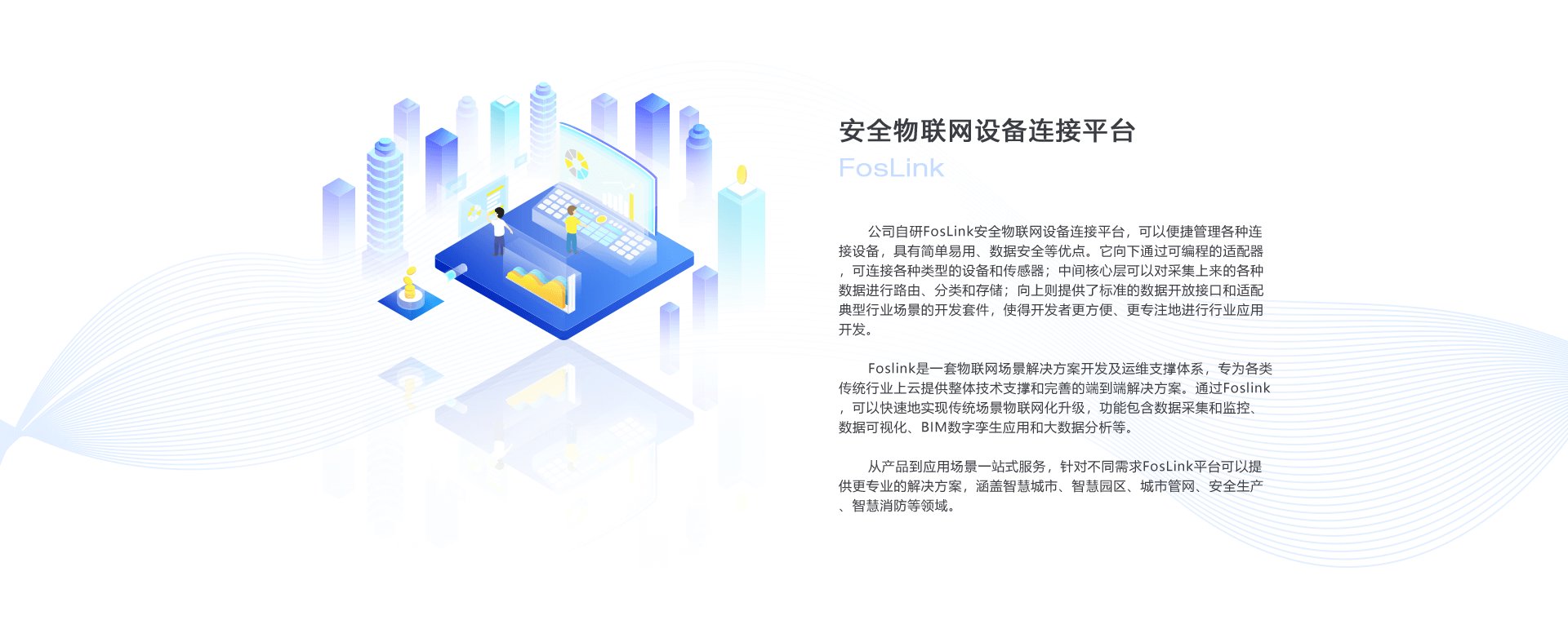 從產(chǎn)品到應用場景一站式服務(wù),針對不同需求FosLink平臺可以提供更專業(yè)的解決方案,涵蓋智慧城市、智慧園區(qū)、城市管網(wǎng)、安全生產(chǎn)、智慧消防等領(lǐng)域。